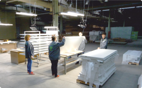Контроль качества на всех этапах производства: прием материала (стекло, МДФ и пр.), контроль качества полуфабрикатов (царги, вставки), проверка качества специалистом ОТК перед упаковкой готового изделия, проверка продукции перед отправкой клиентам