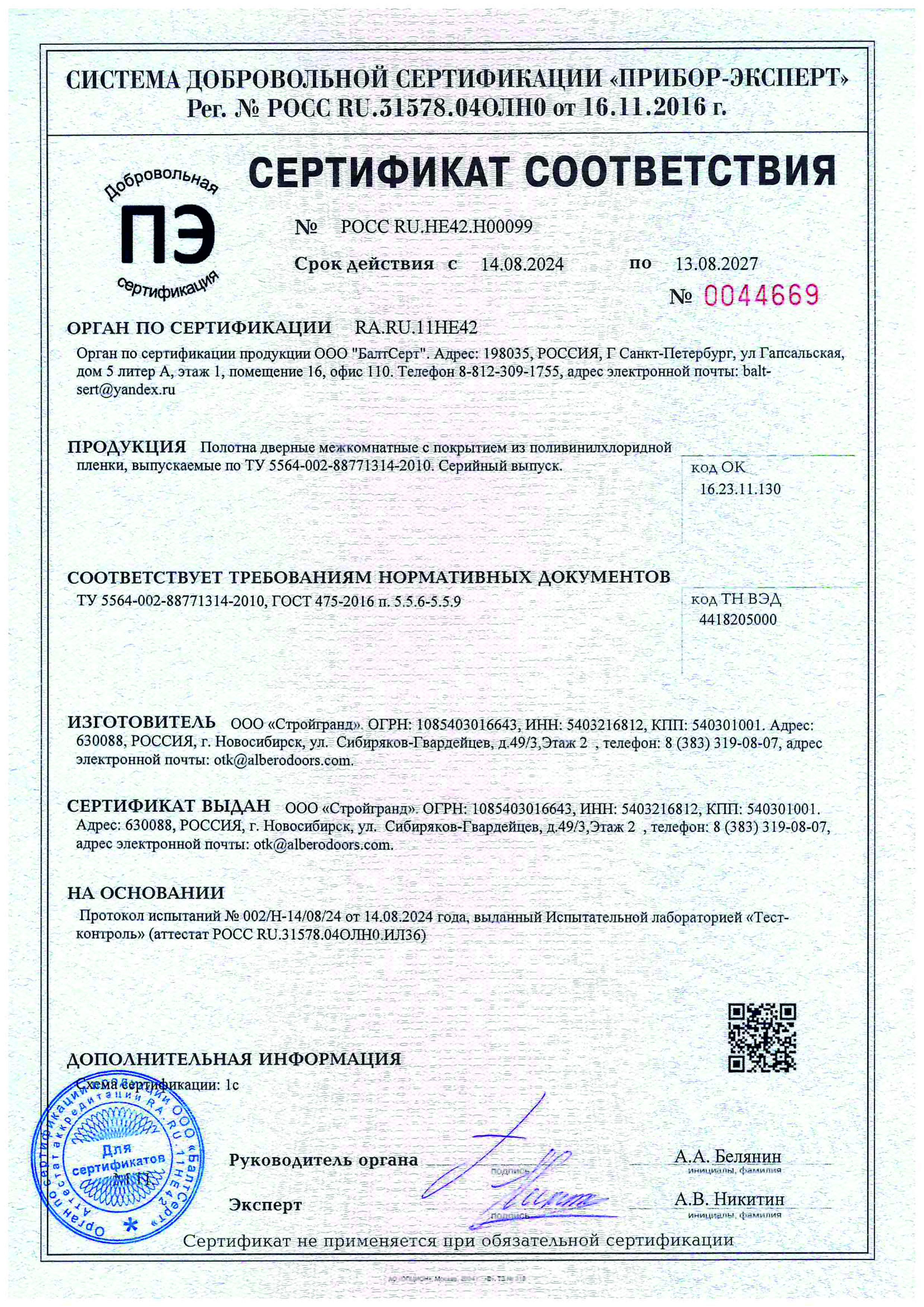 СТАНДАРТЫ И СЕРТИФИКАТЫ