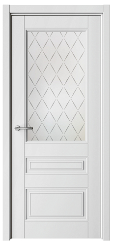 Дверь Классика-3 ширина 90 см Белый Эмаль Стекло мателюкс "Лорд матовое" кромка В цвет полотна в Кемерово