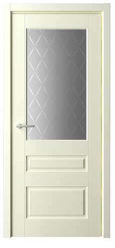 Дверь Классика-3 ширина 90 см Слоновая кость Эмаль Стекло мателюкс "Лорд матовое" кромка В цвет полотна в Кемерово