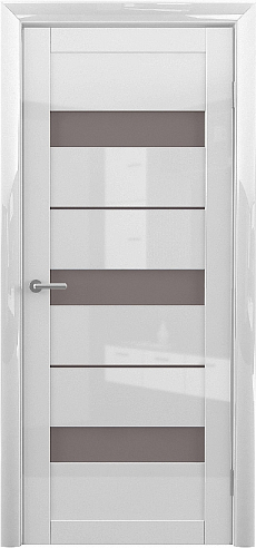 Дверь Прага ширина 90 см Белый глянец Глянец Стекло мателюкс бронза с замком в Кемерово